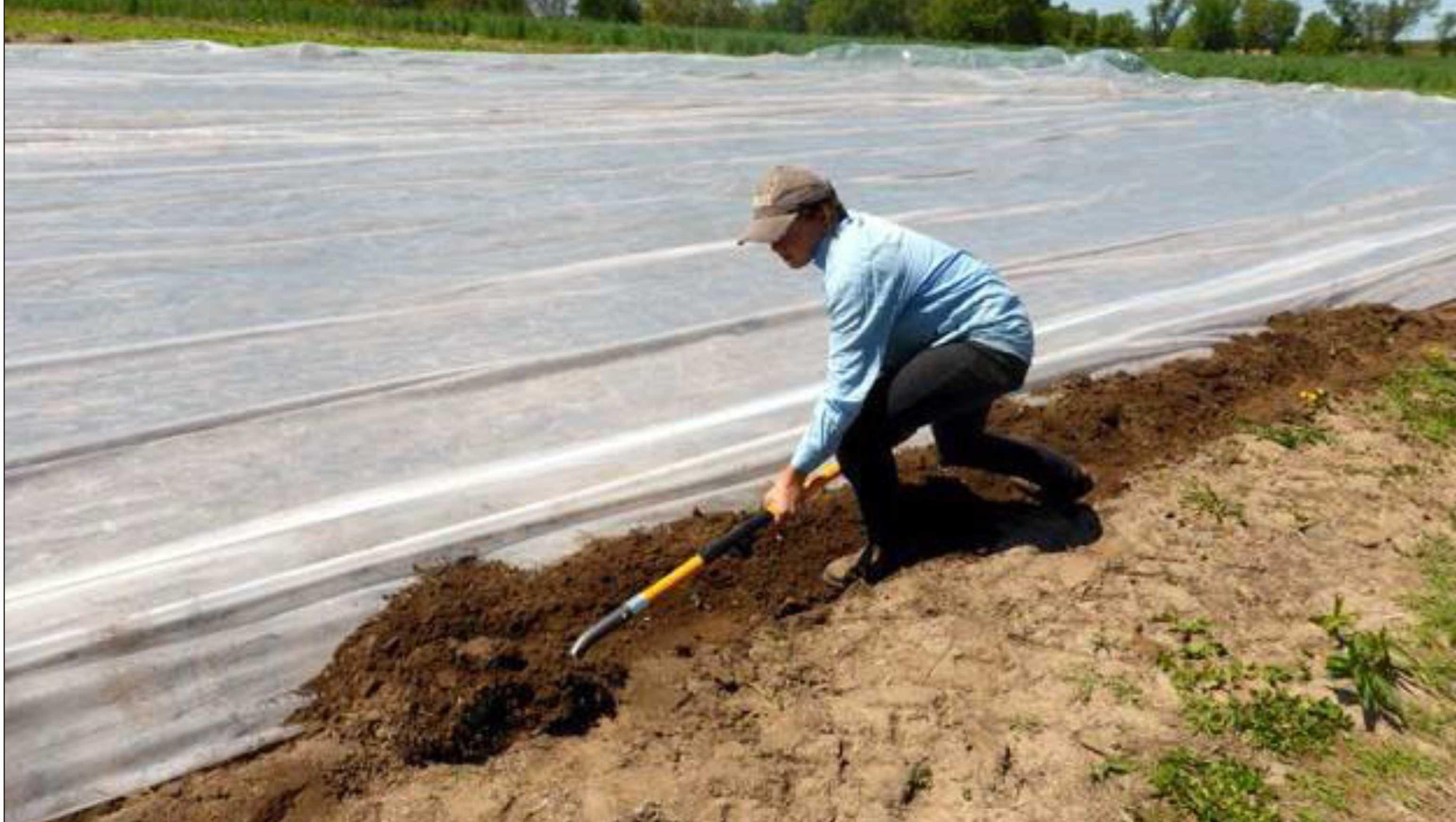Bury the edges of the plastic to prevent the spread of weed seed and limit potentially cooling airflow underneath